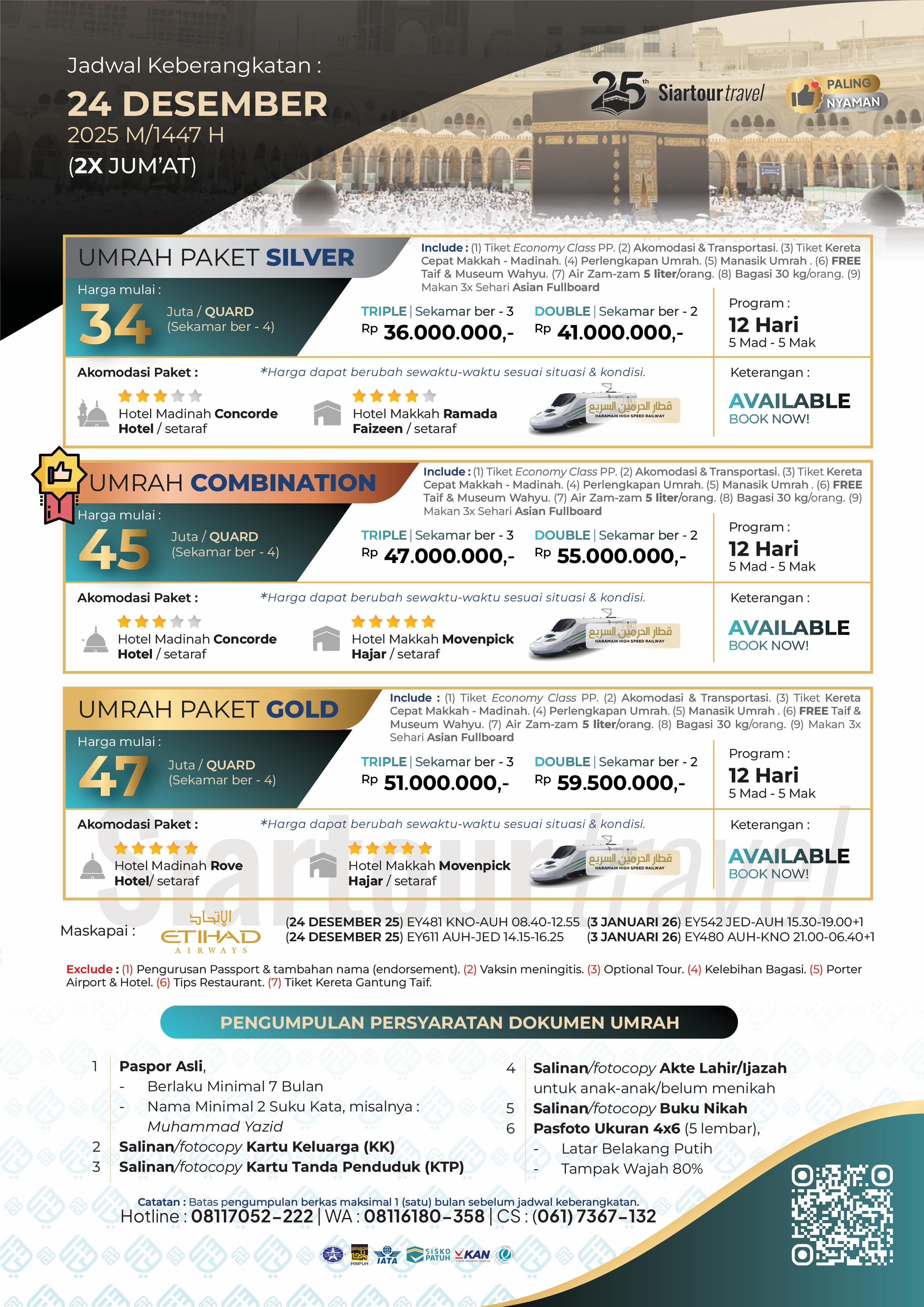 UMROH PAKET COMBINATION 24 DESEMBER 2025 M / 1447 H (2X JUM'AT)
